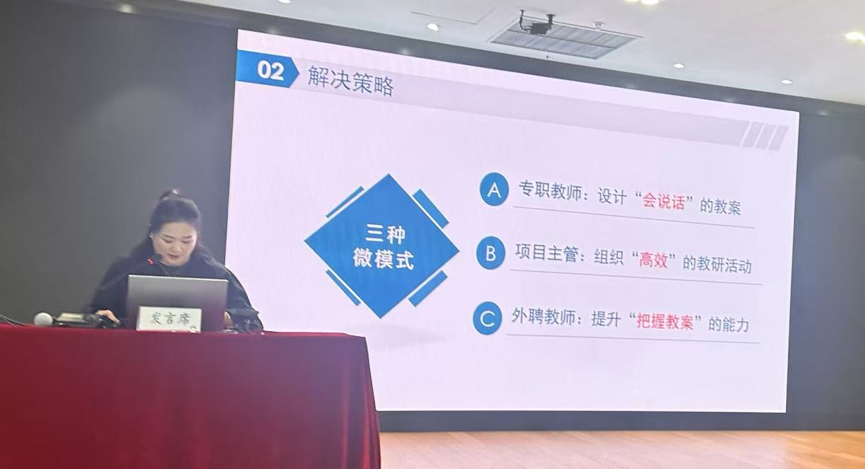 2024年12月5日上午,中心课程教学“微模式微范式”实践成果交流会在综合楼412室成功举行。本次会议旨在总结过去一年各部门在“微模式微范式”教学改革中的探索与成就,分享实践经验,促进教学质量的进一步提升。来自各教学业务部门的教学主管、三期骨干教师培养对象以及项目(课程)负责人等共计八十余人参加了此次交流会。