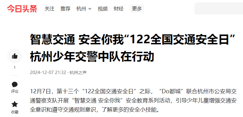 潮新闻、今日头条、搜狐网等报道“Do都城”12月活动“智慧交通 安全你我”