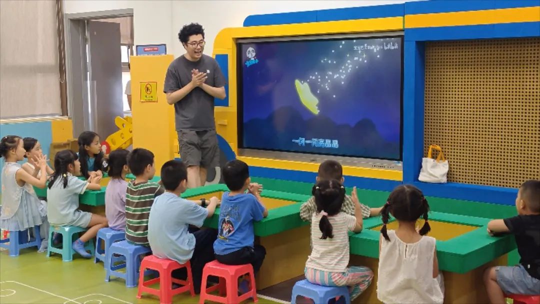 “我们先来为《小星星》鼓鼓掌,找找节奏的感觉。” 大米老师说着,便率先轻轻拍起手,“1-2-3-4,大家跟着我一起。” 孩子们跟着大米老师的节奏鼓掌,小手拍得 “啪啪” 响,虽然一开始有些参差不齐,但在大米老师的引导下,很快就变得整齐起来。后排的家长们也被这欢快的氛围感染,跟着一起轻轻拍手。