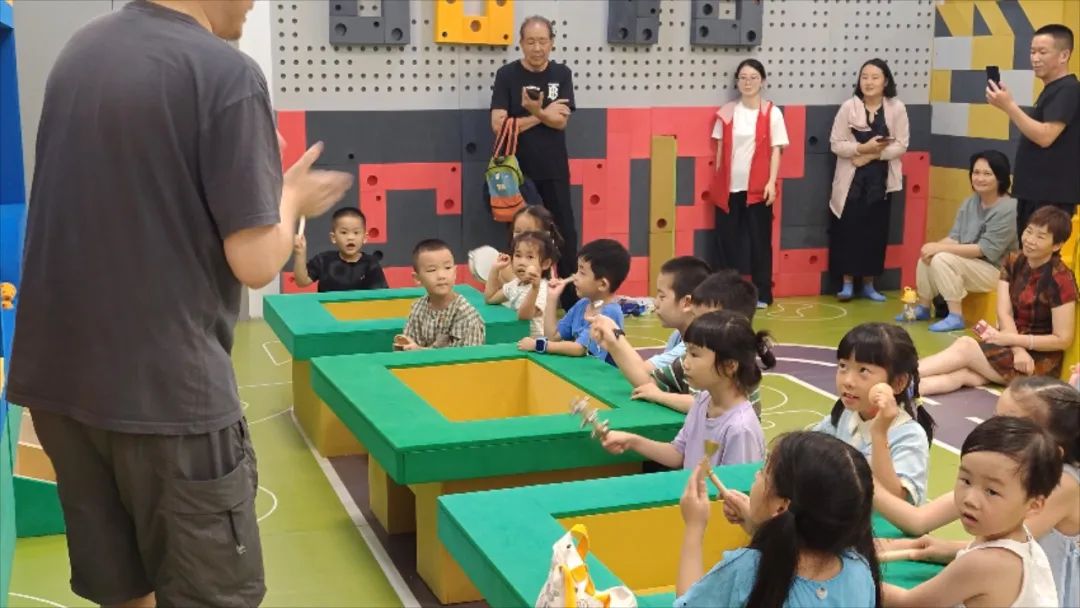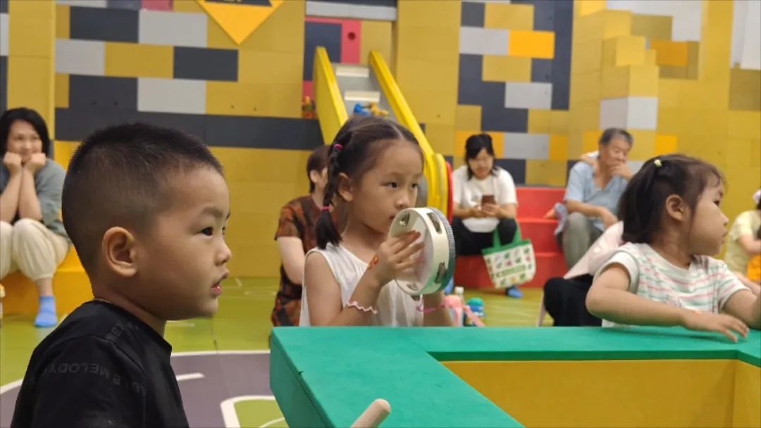 杭州青少年活动中心大米乐园的积木教室里,小朋友们端坐在小椅子上,手里捧着彩色的节拍器。后排的家长们或站或坐,目光温柔地落在自家娃身上,整个教室安静得能听见阳光落在地板上的轻响。
