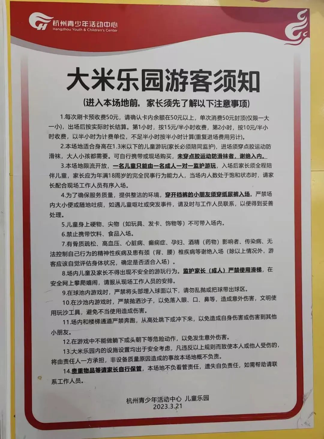 温馨提示:大米乐园仅限身高1.3米以下的儿童游玩(家长须陪同进场监护),进场游玩须穿点胶运动防滑袜(大人小孩都需要穿)。身高不符,未穿防滑袜者,谢绝入内。