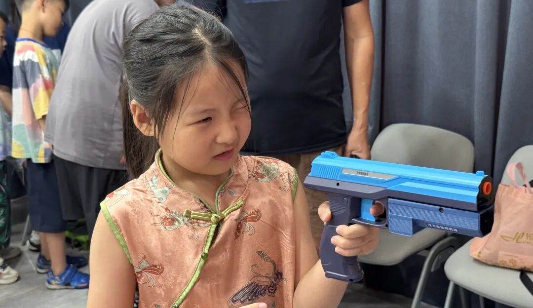 现场不断响起惊呼声和欢笑声,整个会议室热闹非凡,每一张笑脸都在为十环命中而鼓掌、为小球进洞而欢呼,每一个孩子都沉浸在游戏的快乐之中。