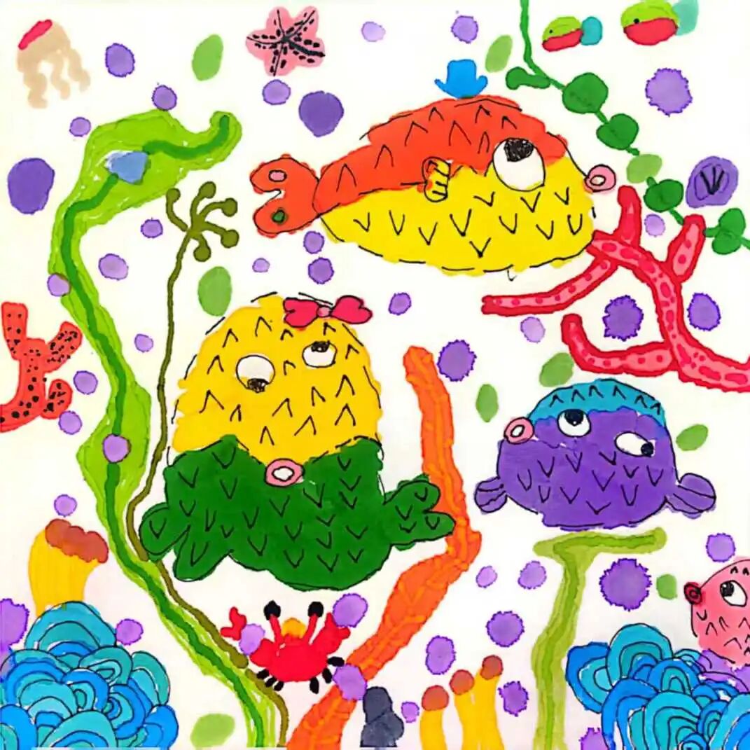 你是否也被这些画作里的奇思妙想所吸引?奇幻恐龙、可爱鱼儿、充满童趣的场景……每一笔都洋溢着孩子的创意与热情。