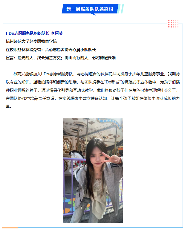 近期,浙江工商大学、浙江财经大学、杭州师范大学等杭城大专院校的大学生志愿者代表在“Do都城”开展2025年“I Do”志愿者服务队队委选举活动,新一届的队委诞生,他们将在未来一年致力于组织学生参与服务队各类实践服务活动,让青春在服务中闪闪发光。