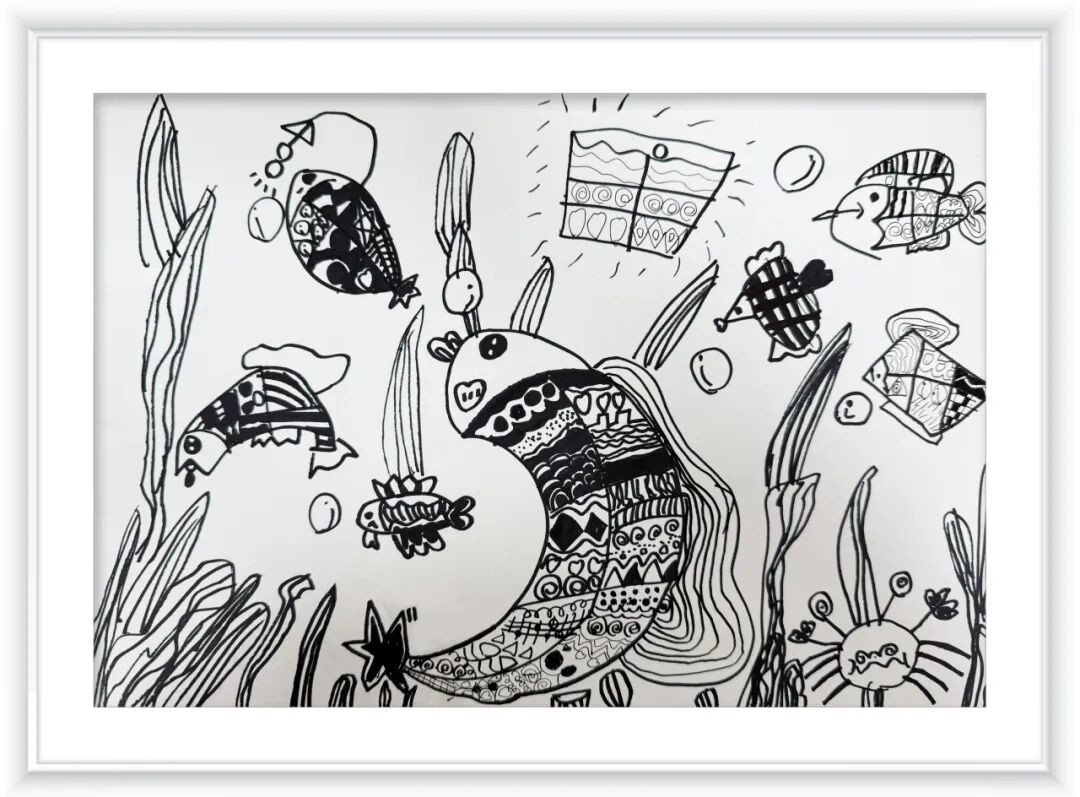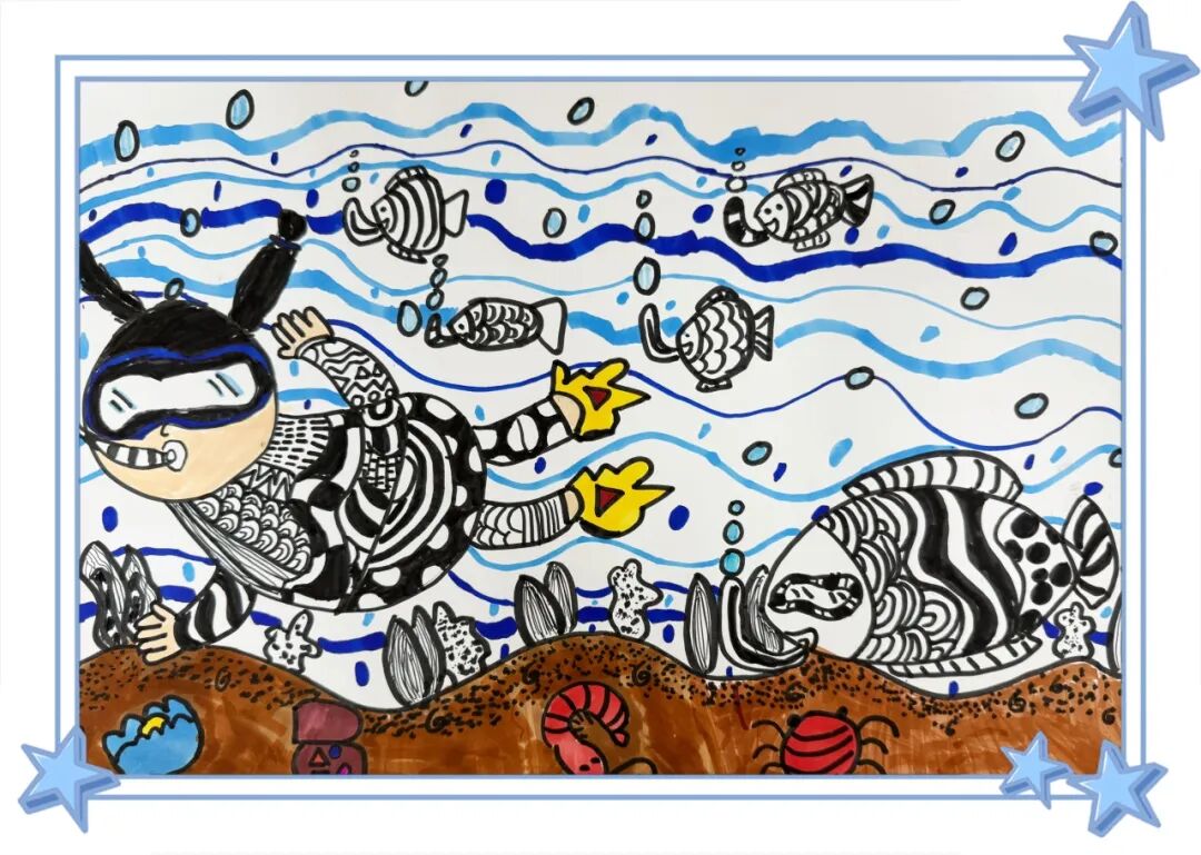 在这里,每一根线条都被赋予了生命与魔法。孩子们用他们最纯真的眼睛观察世界,用最灵巧的小手驾驭线条,从奔涌的海浪到花瓣的纹理,从可爱的动物到脑海中的奇思妙想……他们以笔为舟,以线为路,勾勒出黑白灰分明却无比绚烂的童心宇宙。现在,请您放慢脚步,一起走进孩子们笔下这纯净、细腻又充满惊喜的童话世界吧!