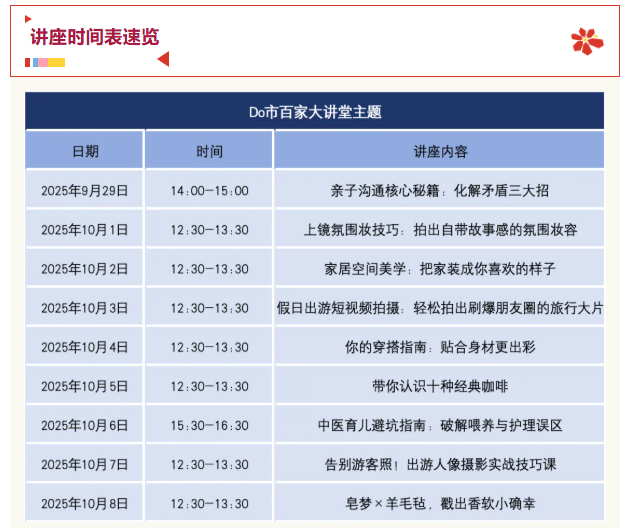 Do市百家大讲堂开讲啦!9场精品讲座,涵盖家庭教育、健康养生、生活艺术、职场赋能多个主题,超多实用内容,等你来听!