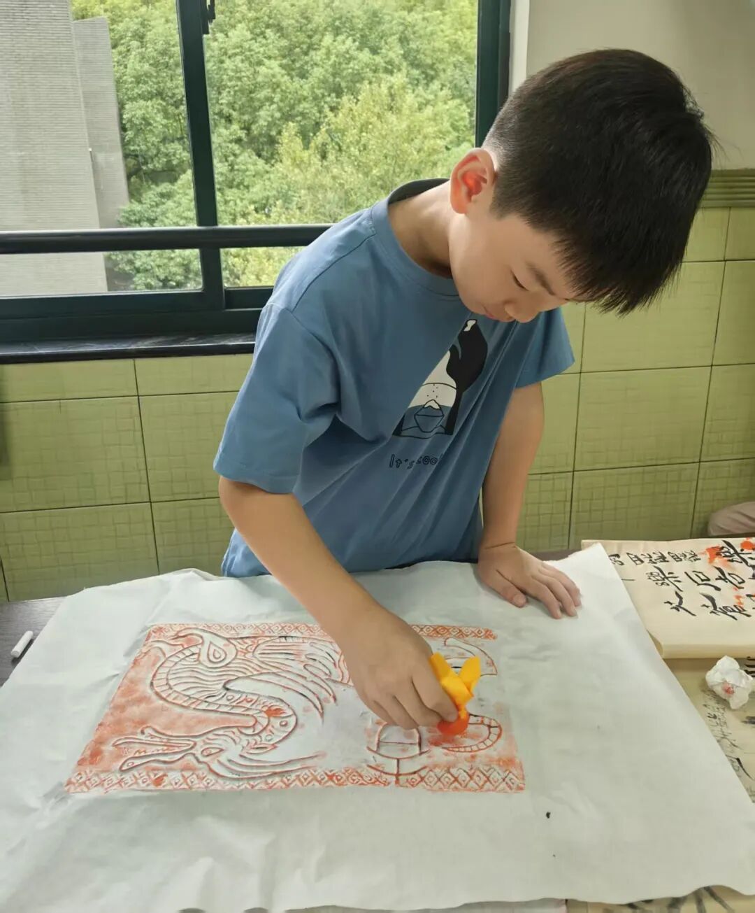 专业导师揭秘汉代画像砖的纹样密码。少年们亲手传拓,当蝉纹瓦当的轮廓渐渐浮现于宣纸之上,千年文明仿佛在指尖复苏。