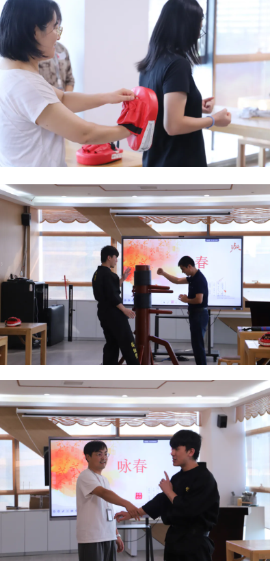 实践体验环节更是亮点十足。顶肘打靶体验,让参与者亲身感受咏春招式的发力技巧,在互动中提升身体协调性与反应能力;木人桩体验环节,沉浸式体验传统武术的魅力,进一步加深对咏春技法的理解与掌握。