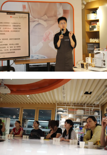 滕毅老师从意式咖啡的起源聊起,像讲故事一样,带大家走过浓缩咖啡从19世纪雏形到20世纪完善的演变历程。他分享一杯好的浓缩咖啡,秘诀就在于高温高压的精准萃取——正是这股力量,锁住了咖啡最浓郁的香气,也成为现代咖啡文化的起点。现场观众听得津津有味,仿佛每一口咖啡都喝进了历史里。