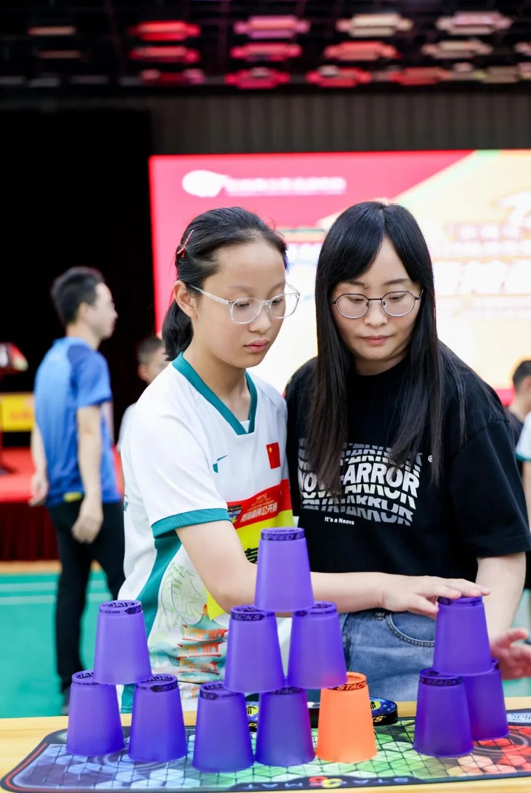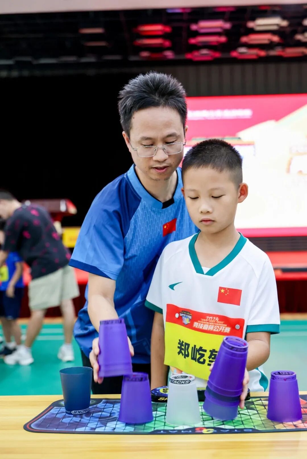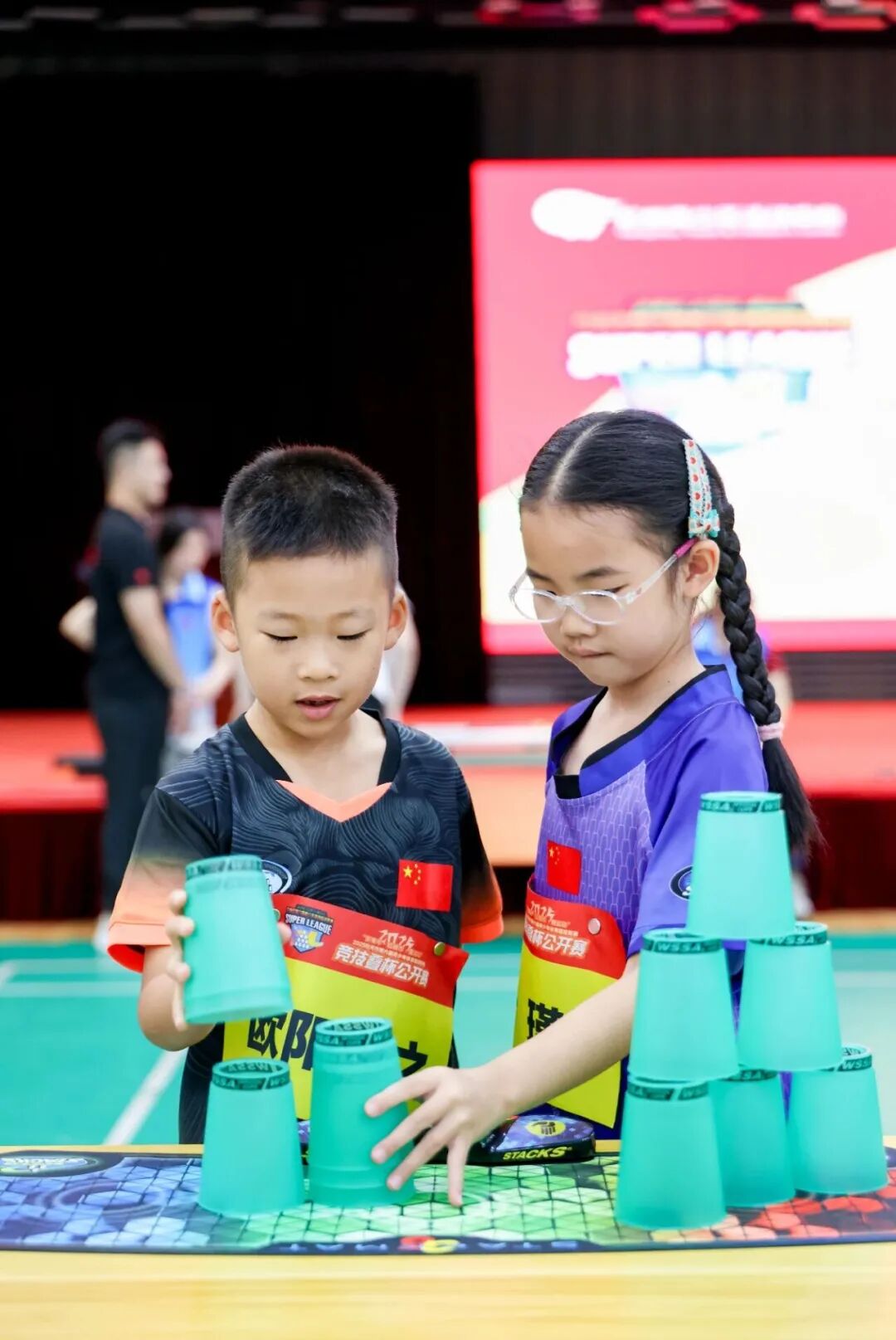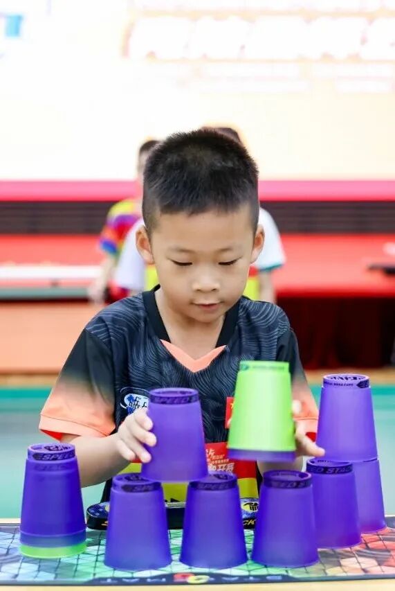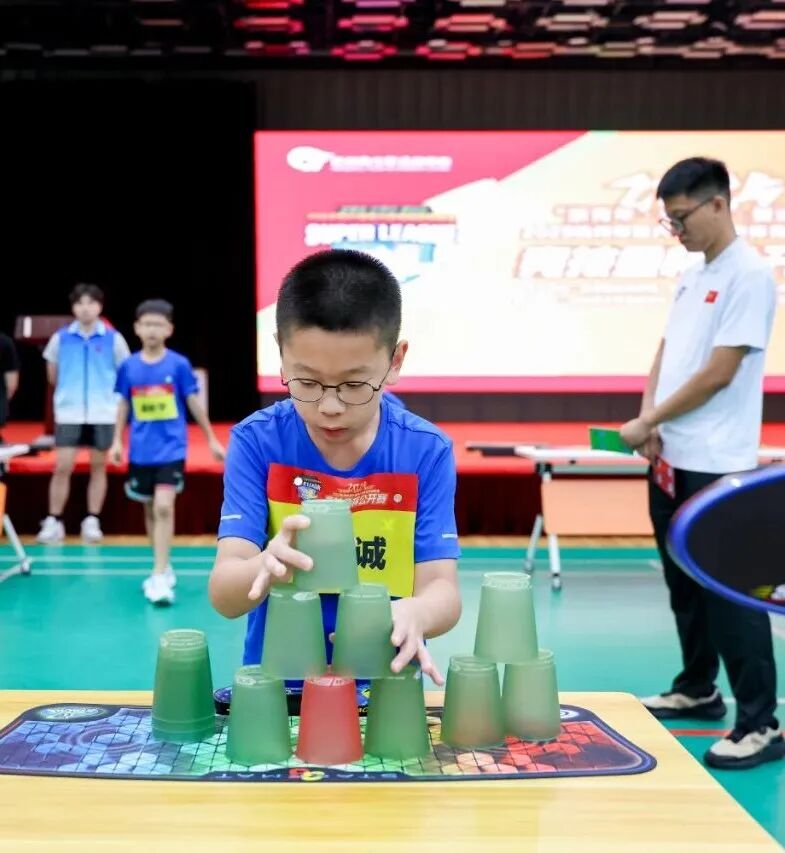 赛事项目设置丰富多样,兼顾了竞技性与趣味性。除了考验个人速度与稳定性的个人赛外,还设有讲究默契配合的双人赛、充满温馨互动氛围的亲子赛以及展现团队协作精神的团体接力赛。多元化的赛制为不同年龄层和水平的青少年提供了展示舞台,也全面展现了竞技叠杯运动的魅力。