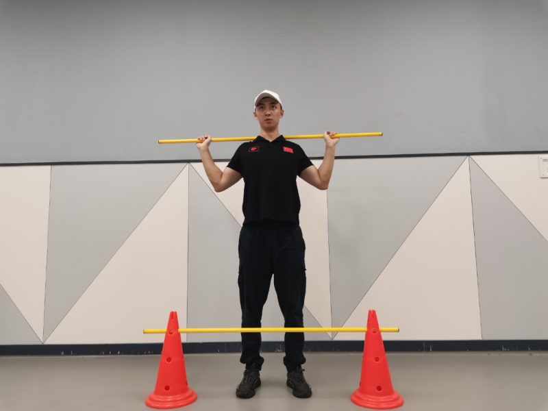 · 横杆过顶的动作可以测试肩关节、肩胛区、胸椎灵活性和稳定性。