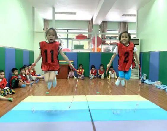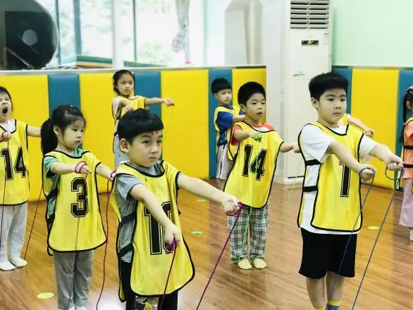 看,飞快甩动的双手,快速跳跃的双脚,配合着跳过一圈又一圈。