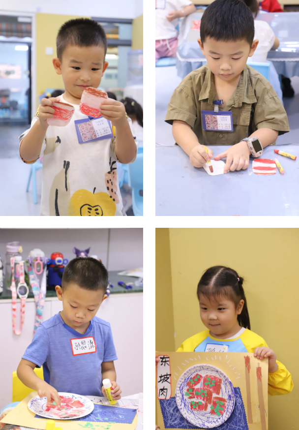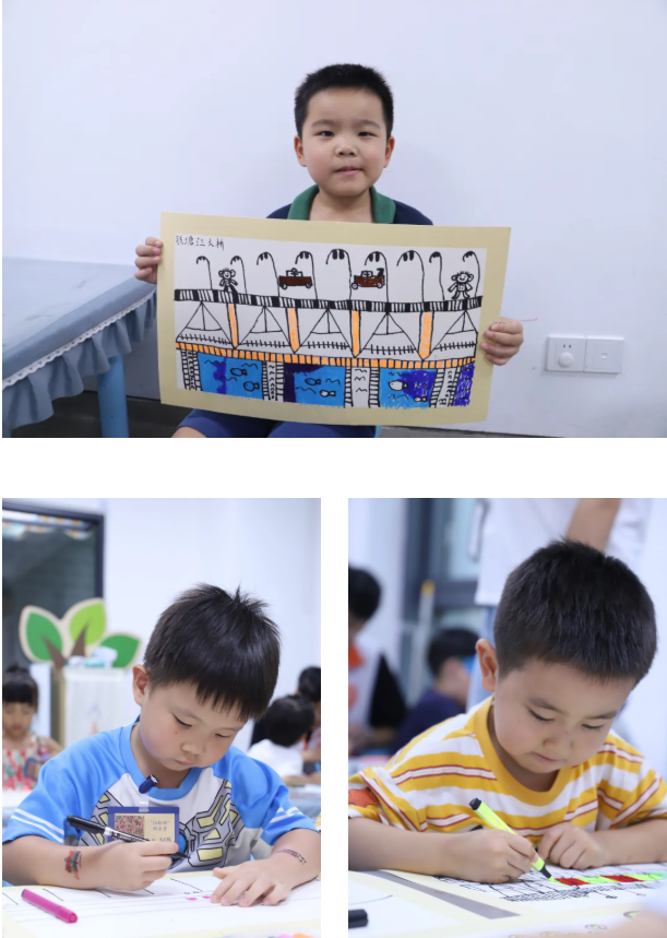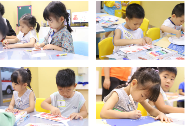 学员通过蜡笔绘画、色彩晕染及剪贴技法
