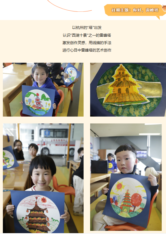 文化之美(传承杭州文化)、艺术之美(致敬艺术大师)、城市之美(玩转艺术职业)、历史之美(爱上博物馆)、科学之美(科学创意工坊)